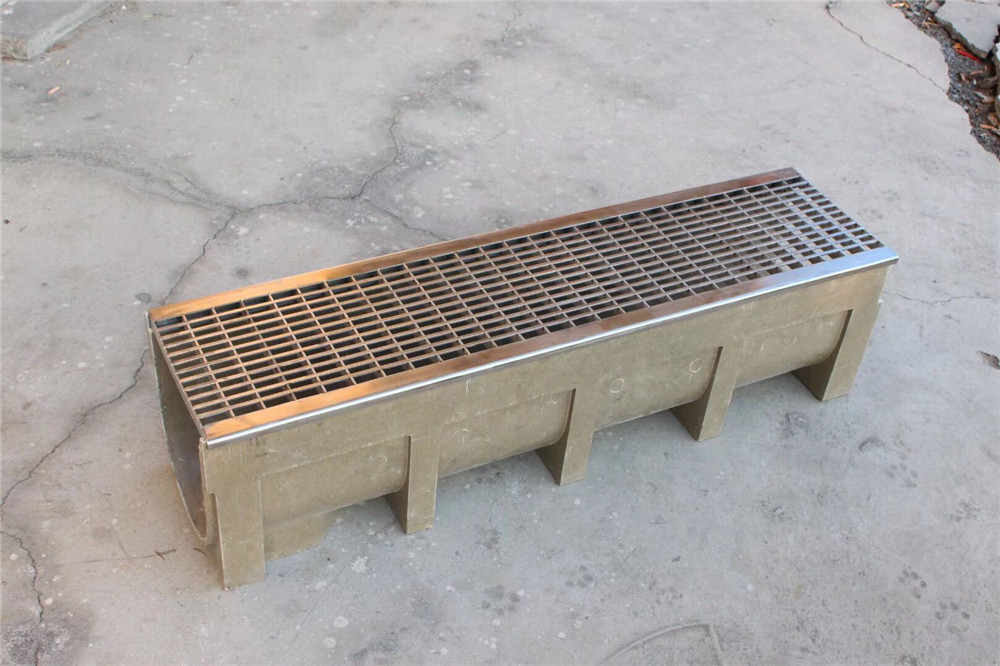 (6)树脂排水沟表面光滑,具有艺术品的外观,维护保养容易:树脂混凝土排水沟表面不起砂、光滑,可以根据不同的需求,添加不同的色料,制造出不同外表颜色的产品来,甚至可以根据要求进行表面电镀。表面不易堆积沉淀物,容易冲洗而且不会刷坏。